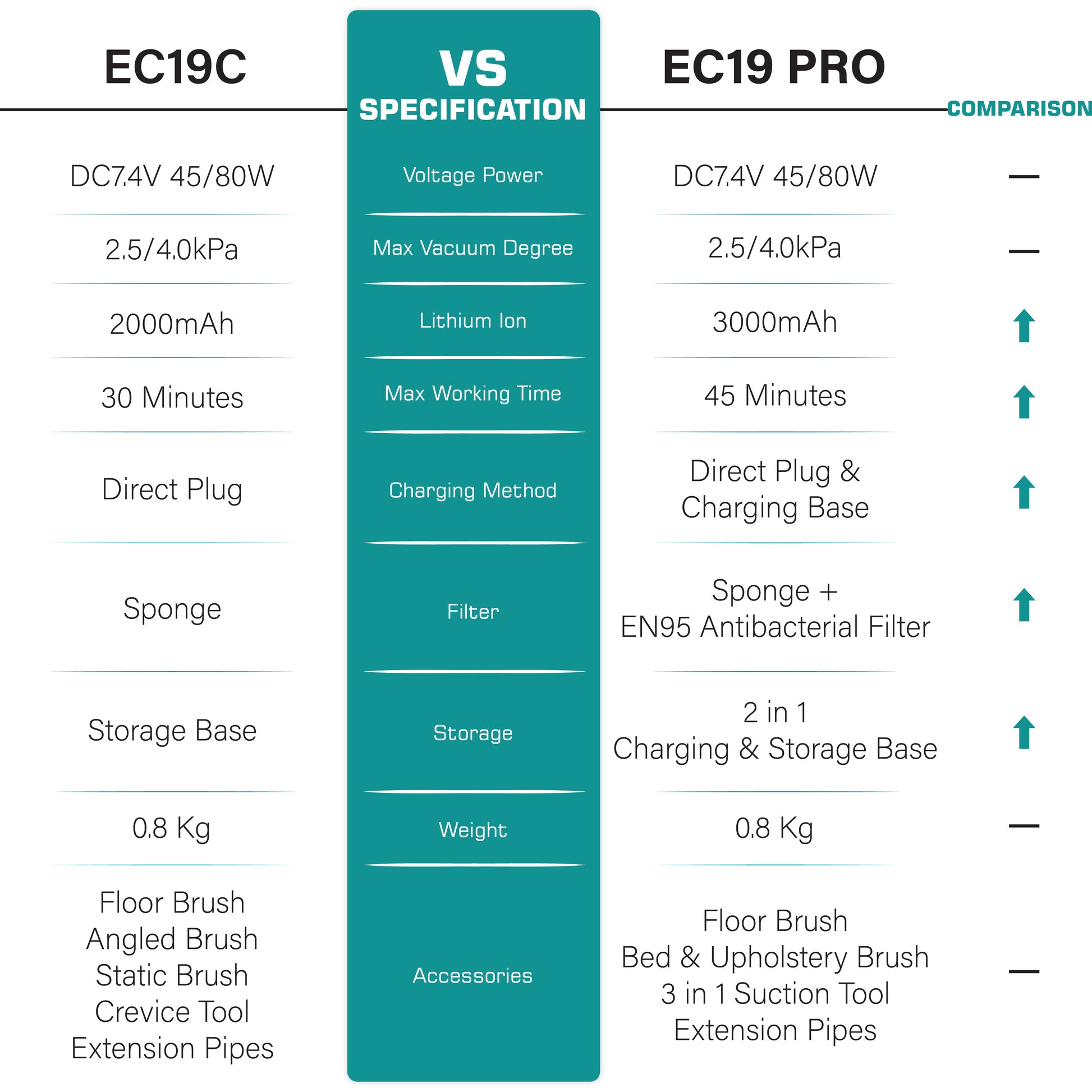 • Weight: 0.84kg (Vacuum Unit)